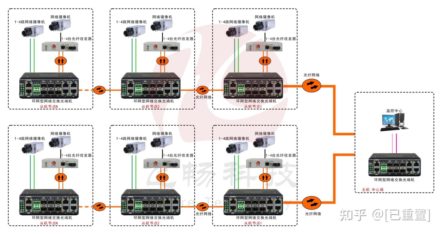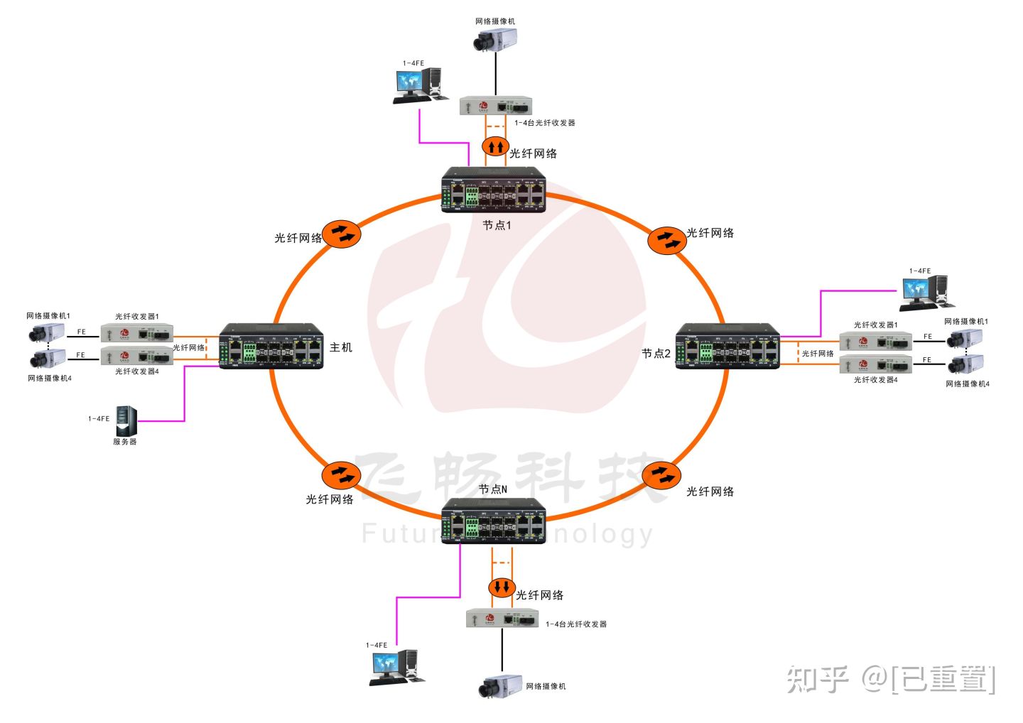 ◆ 支持多种光纤网络结构:点对点、星型、链型、环网冗余,并可组合为更复杂的网络拓扑结构支持多种光纤网络结构;