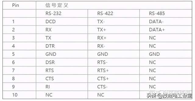 RS485标准物理接口也是9个引脚的,对于引脚定义有不同的标识。