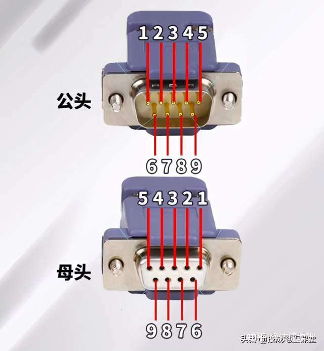 最初RS232标准物理接口是25个引脚的,因为常用的是9个引脚,后来就基本采用DB9连接器了,下面我们看一下RS232的DB9连接器的引脚定义。